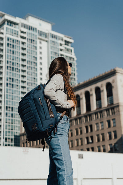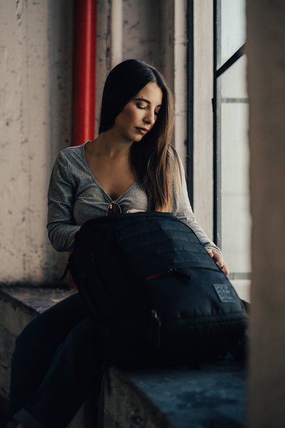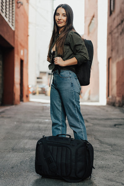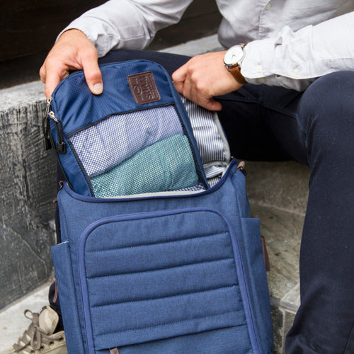 Stay organized with travel cubes. Each backpack comfortably fits a large and small Sham Bags travel cube with extra space to spare.
